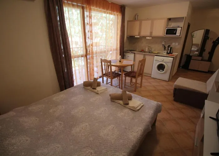 Ivory Cascadas Studio 阳光海滩毗邻Royal Beach Mall,距离布尔加斯机场30公里. 公寓的客人可使用大厨房,那里配有电子热水壶,冰箱和洗衣机.